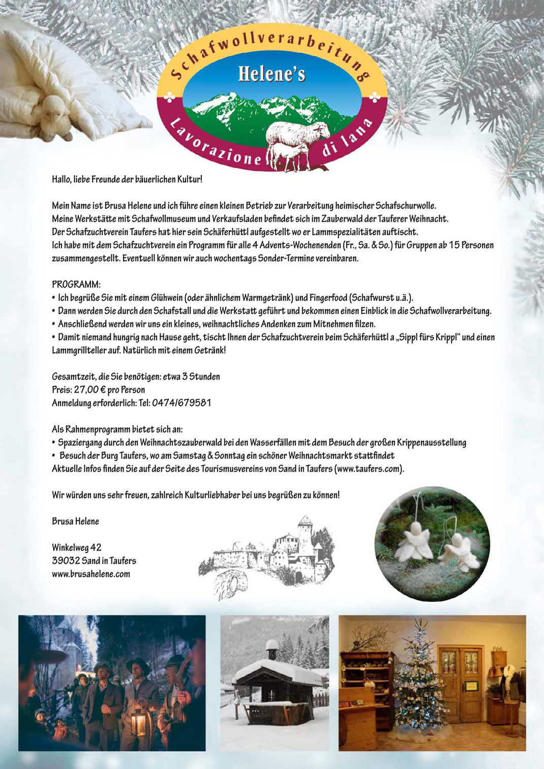 täglich zu den Öffnungszeiten Mo - Fr: 15.00 - 18.00 Uhr Sa: 15.00 - 17.00 Uhr Dienstag 17.00 Uhr: geführte Wanderung mit Filzgaudi - Anmeldung erforderlich! Gruppen nur nach Absprache